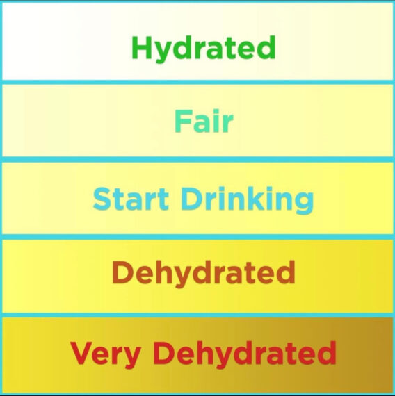 It might be embarrassing to say but take a look at your urine. Aim for pale yellow color, which is a good indicator of proper hydration. Dark yellow or amber urine may suggest dehydration. To learn more about the importance of hydration for your kidney health read our blog Hydration & Your Kidneys.